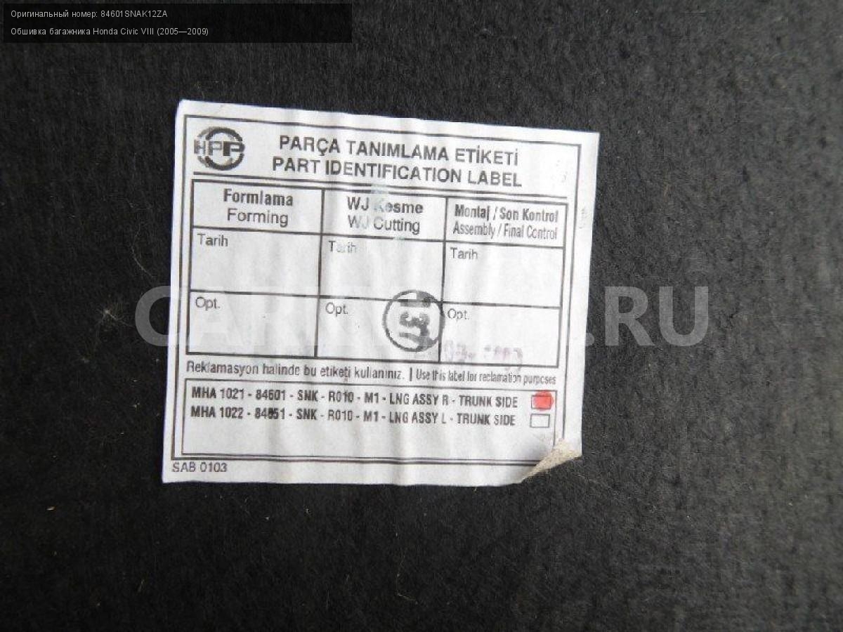 Обшивка багажника Honda Civic VIII (2005—2009) Honda Civic оригинальный номер 84601SNAK12ZA