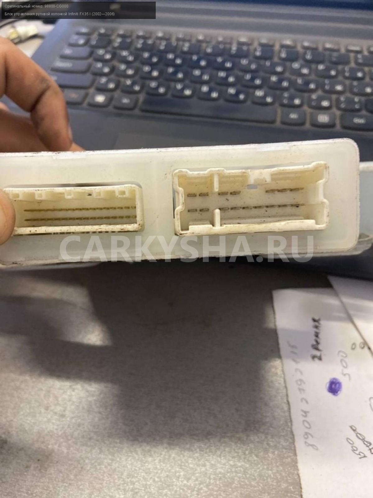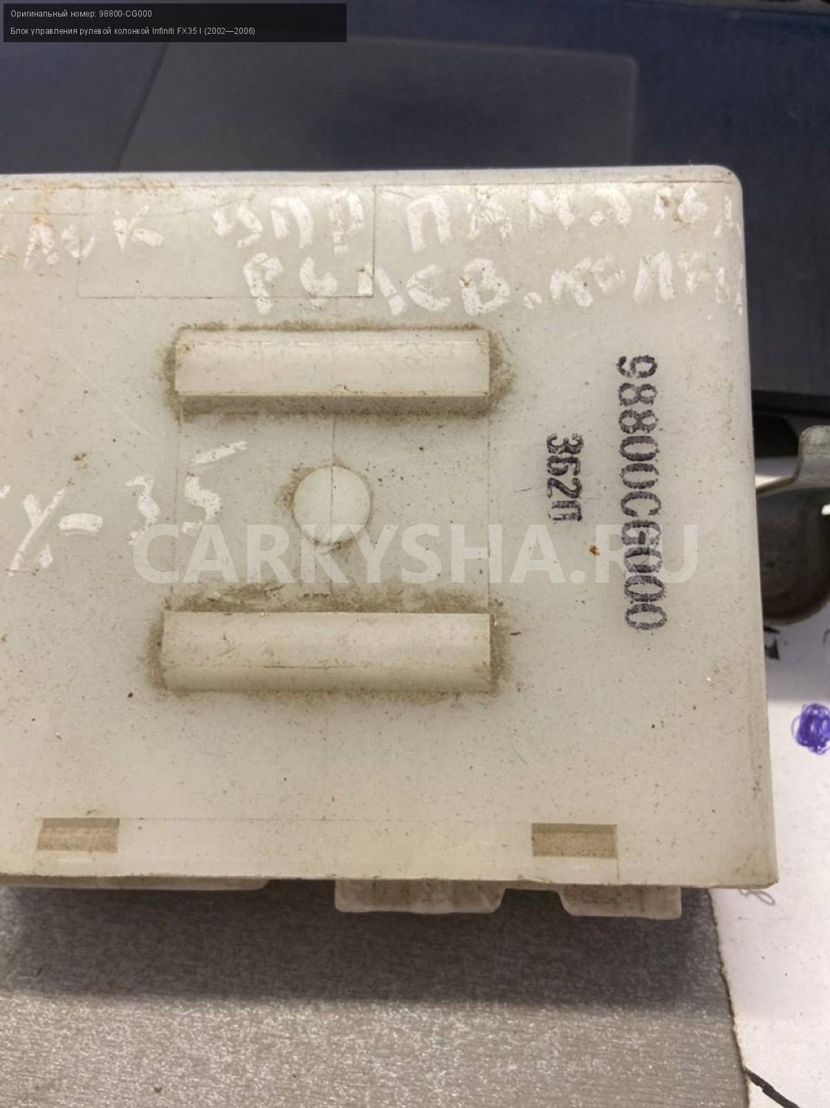 Infiniti FX35 I , Блок управления рулевой колонкой\nАртикул: 2710\n\nОриг. номер: 98800-CG000\nПроизводитель: INFINITI\nПримечание:Инфинити ФХ 35 1, Блок управления рулевой колонкой, б/у\n\nМарка: Infiniti\nМодель: FX35 I (2002—2006)\nКузов тип: Внедорожник\nОбъем: 3.5\nТопливо: Бензин\nКоробка: Автомат\nСовместимости: Infiniti FX35 I (2002—2006) 3.5 4WD AT (280 л.с.)\nСовместимость: