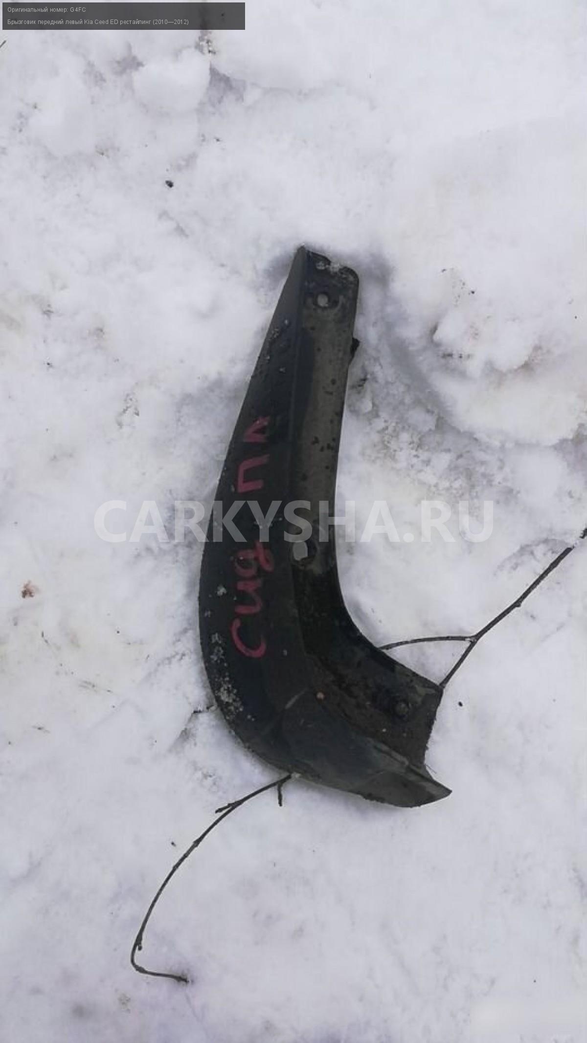 Kia ceed ed брызговик передний левый\nАртикул: 449\n\nОриг. номер: G4FC\nПроизводитель: Hyundai-KIA\nПримечание:Кия сид 1 ед брызговик передний левый бу, а так же множество автомобилей в разборе, работаем с регионами отправка тк, выкуп авто после ДТП по всей России, отправка тк осуществляется после 100% оплаты, наложенным платежом не работаем стоимость доставки не рассчитываем\n\nМарка: Kia\nМодель: Ceed ED рестайлинг (2010—2012)\nКузов тип: Универсал\nОбъем: 1.6\nТопливо: Бензин\nКоробка: Механика\nСовместимости: Kia Ceed ED рестайлинг (2010—2012) 1.6 MT (126 л.с.)\nСовместимость: