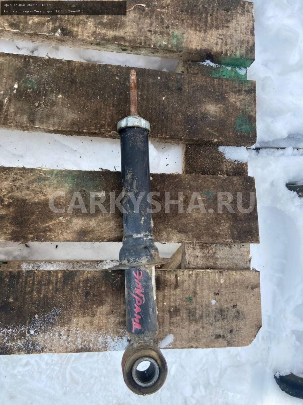 Geely Emgrand EC7, амортизатор задний.\nАртикул: 7039\n\nОриг. номер: 1064001268\nПроизводитель: GEELY\nПримечание:Джили Эмгранд ЕС7, амортизатор задний, б/у. \n\nМарка: Geely\nМодель: Emgrand EC7 I (2009—2016)\nГод выпуска: 2013\nКузов тип: Седан\nДвигатель номер: JL4G15D\nМодель двигателя: инжектор\nОбъем: 1.5\nТопливо: Бензин\nКоробка: Механика\nЦвет: Черный\nПеред/Зад: Зад\nСовместимости: Geely Emgrand EC7 I (2009—2016) 1.5 MT (98 л.с.)\nСовместимость: